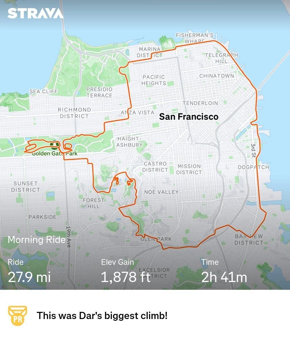 Hills have been rough. I’m trying to ride more and figure out how to handle hills. I thought it would be a lot easier but I got out of shape lately after the holidays and my thumb surgery. BC has been getting me out in the city on rides to hit more hills. Last weekend, we rode up to Sutro and Twin Peaks which is my biggest climb ever so far. With the AIDS/LifeCycle ride hitting elevations on certain days hitting close to 5,000 ft and 40-109 miles each day, I have a lot of work to do before June.